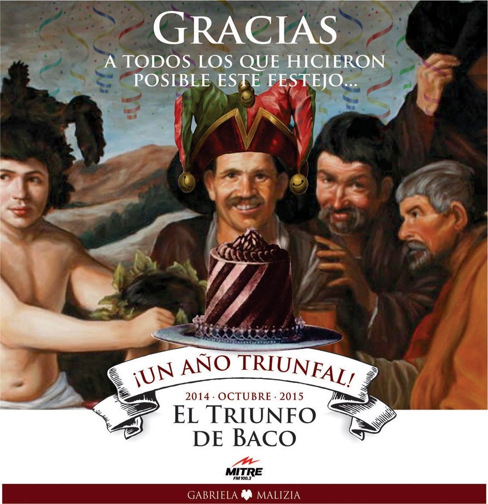 El Triunfo de Baco, programa que se emite todos los viernes de 9.30 a 10 horas por Radio Mitre Mendoza (100.3mhz) cumplió un año de edad. Corta historia, y sin embargo, la riqueza de los invitados que han pasado por el programa, dejó una impronta de profundidad en este breve tiempo en el aire.