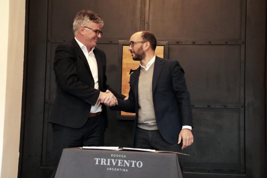 El Director de la DGE, José Thomas, y el CEO de Trivento, Marcos Jofré, dejaron impresa su rúbrica para iniciar la Primera Aula Abierta para la comunidad de referidos y convocados de la bodega. La iniciativa invita a los colaboradores de la empresa a sugerir a una persona que necesite terminar sus estudios y brindarle una posibilidad de crecimiento y superación personal.