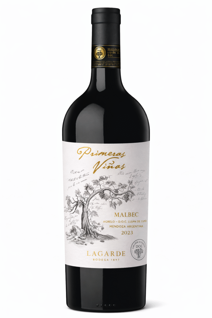 En esta línea Bodega Lagarde presenta Primeras Viñas D.O.C. Agrelo Malbec, una incorporación a su colección de alta gama dedicada a explorar la identidad de sus primeros e históricos viñedos de Mendoza. De partida limitada y cosecha 2023, el vino refleja una interpretación clásica del Malbec de Agrelo, uno de los distritos más emblemáticos del vino argentino.