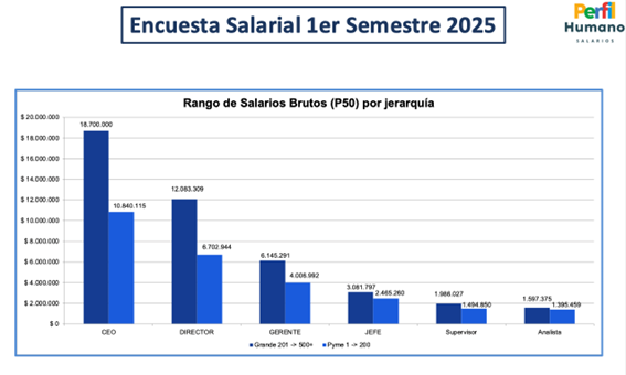 En el estudio se señala, no obstante, que un CEO de empresas grandes tiene un salario que ronda los 18,5 millones de pesos; hay bodegas grandes en las que el cargo de CEO y gerente son equiparables.