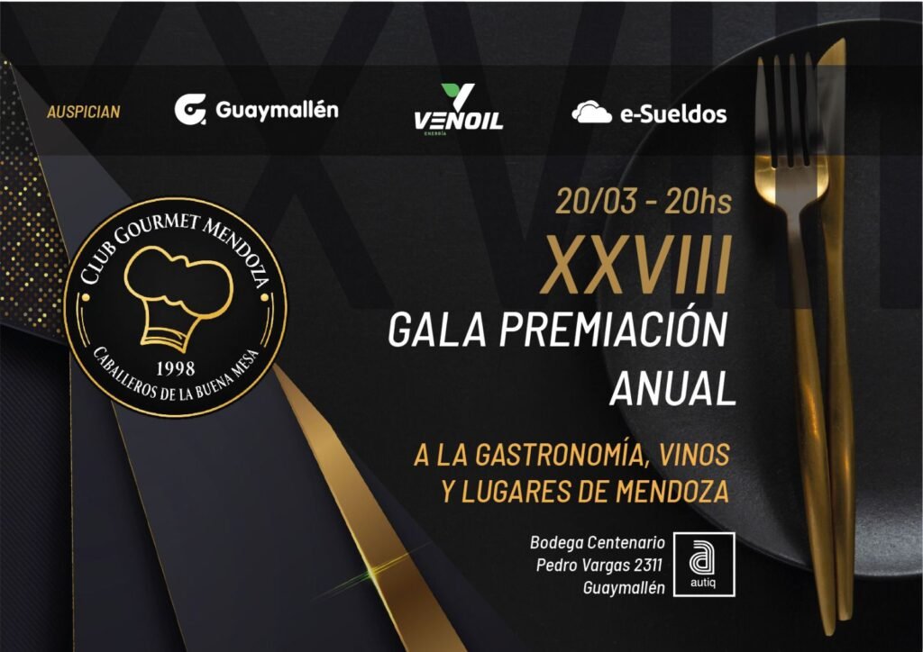 A pocos días de su realización, la XXVIII Gala de Premiación del Club Gourmet Mendoza entra en su etapa final de venta de entradas y se consolida como uno de los eventos más destacados del calendario enogastronómico de la provincia. La cita será el viernes 20 de marzo en Espacio Autiq – Bodega Centenario, con una propuesta que reúne gastronomía, vinos, arte y entretenimiento en una misma noche.